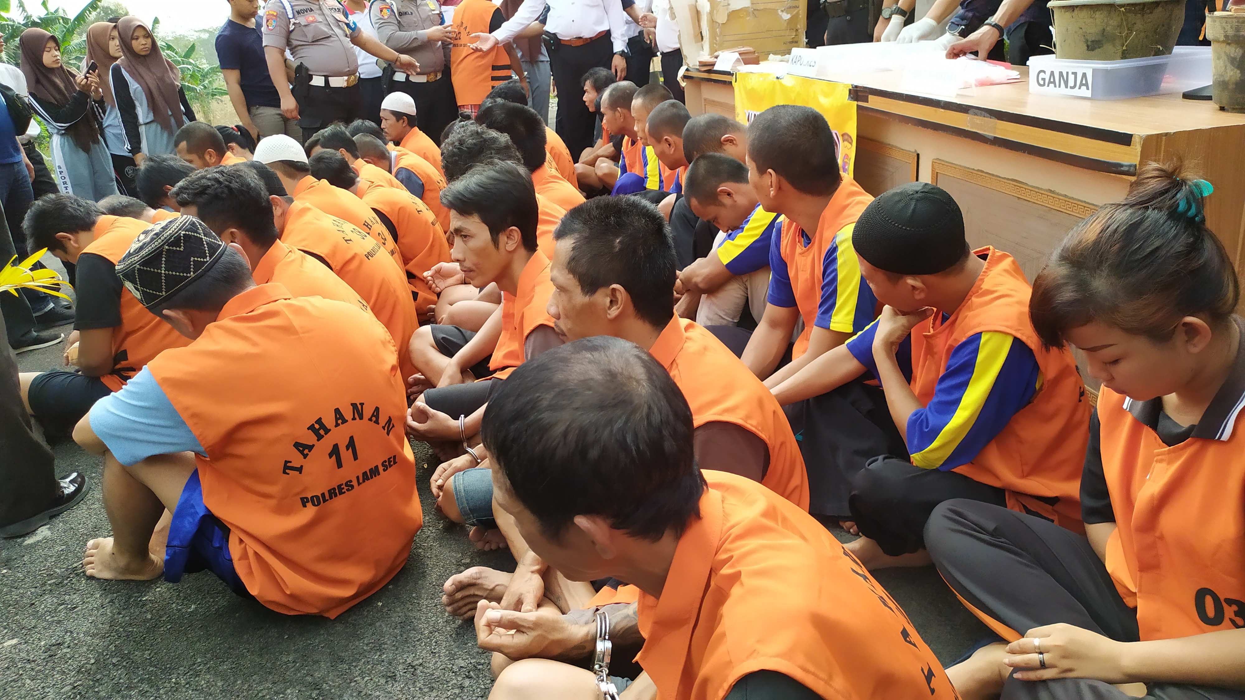 Dari 59 tersangka yang di amankan, 57 laki laki dan 2 di antaranya perempuan yang kedapatan memiliki Sabu di kecamatan Tanjung Bintang.