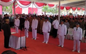 SIDOMULYO (Lampungraya.id) – – Pelaksana tugas (Plt) Bupati Lampung Selatan H. Nanang Ermanto melantik enam Kepala Desa (Kades) terpilih hasil pilkades serentak gelombang III dari Kecamatan Sidomulyo, di lapangan Desa Sidomulyo, Rabu (4/9/2019).