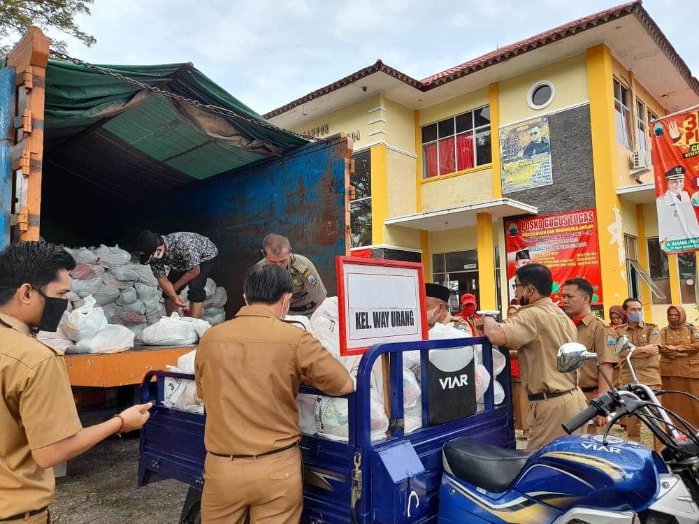 Di Kecamatan Kalianda, Pemerintah Kabupaten (Pemkab) Lampung Selatan mendistribusikan 2.740 paket sembako bagi masyarakat kurang mampu yang terdampak COVID-19.