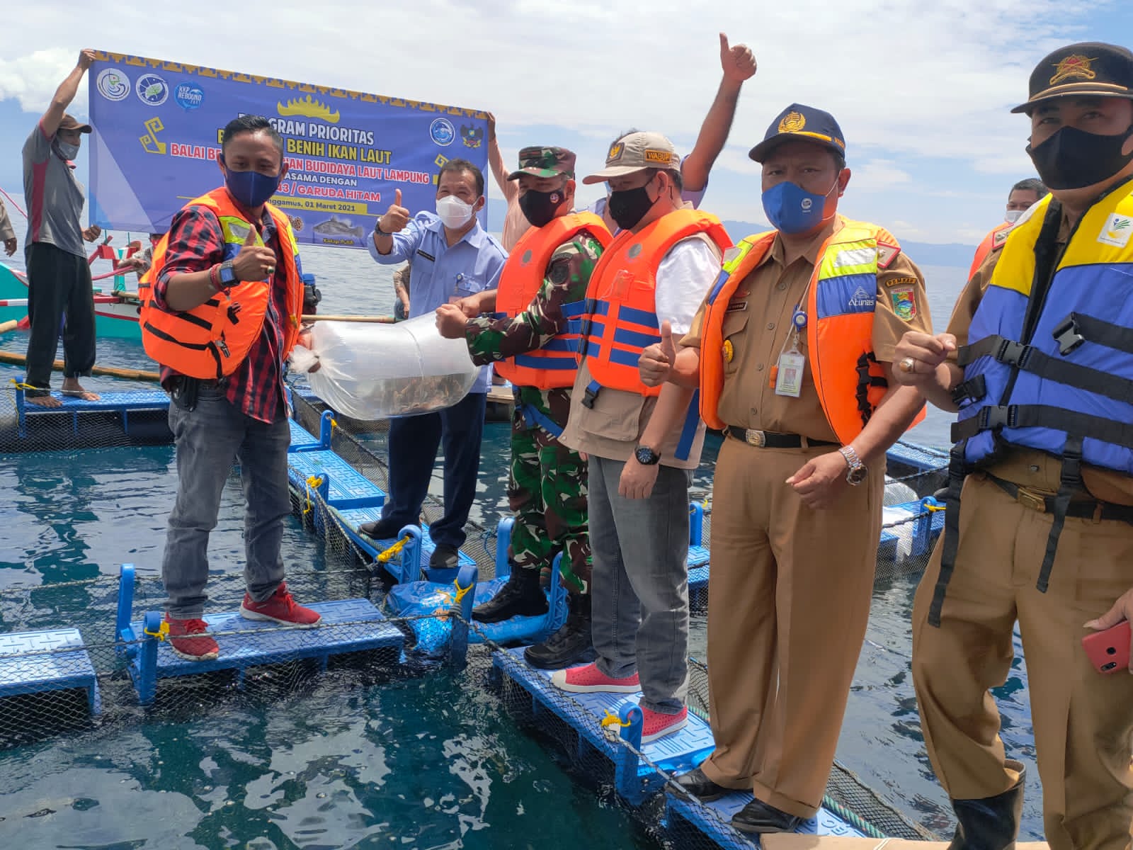 Danrem 043 Gatam, Brigjen TNI Toto Jumariono, dalam sambutannya menyampaikan kunjungan kerjanya dilaksanakan untuk melepaskan bibit benih ikan karapu budidaya laut.